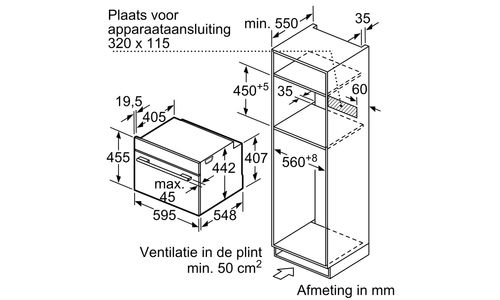 ++ Nishoogte (minimaal): 45,50 cm ++ Inhoud ovenruimte: 45 Liter ++ Reiniging van de oven: Gewone reiniging ++