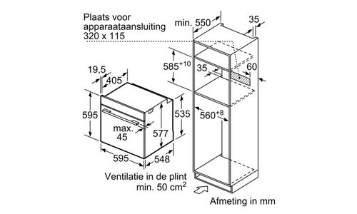 | Inbouwafmetingen (H x B x D) | 585-595 x 560-568 x 550 mm |
