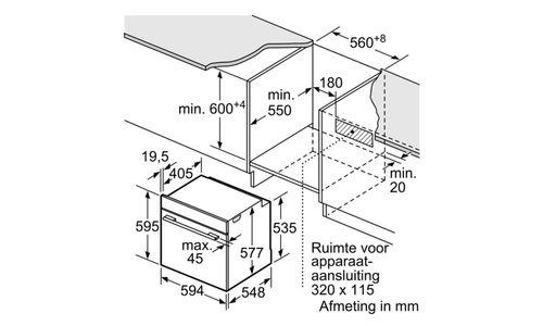 | Inbouwafmetingen (H x B x D) | 585-595 x 560-568 x 550 mm |