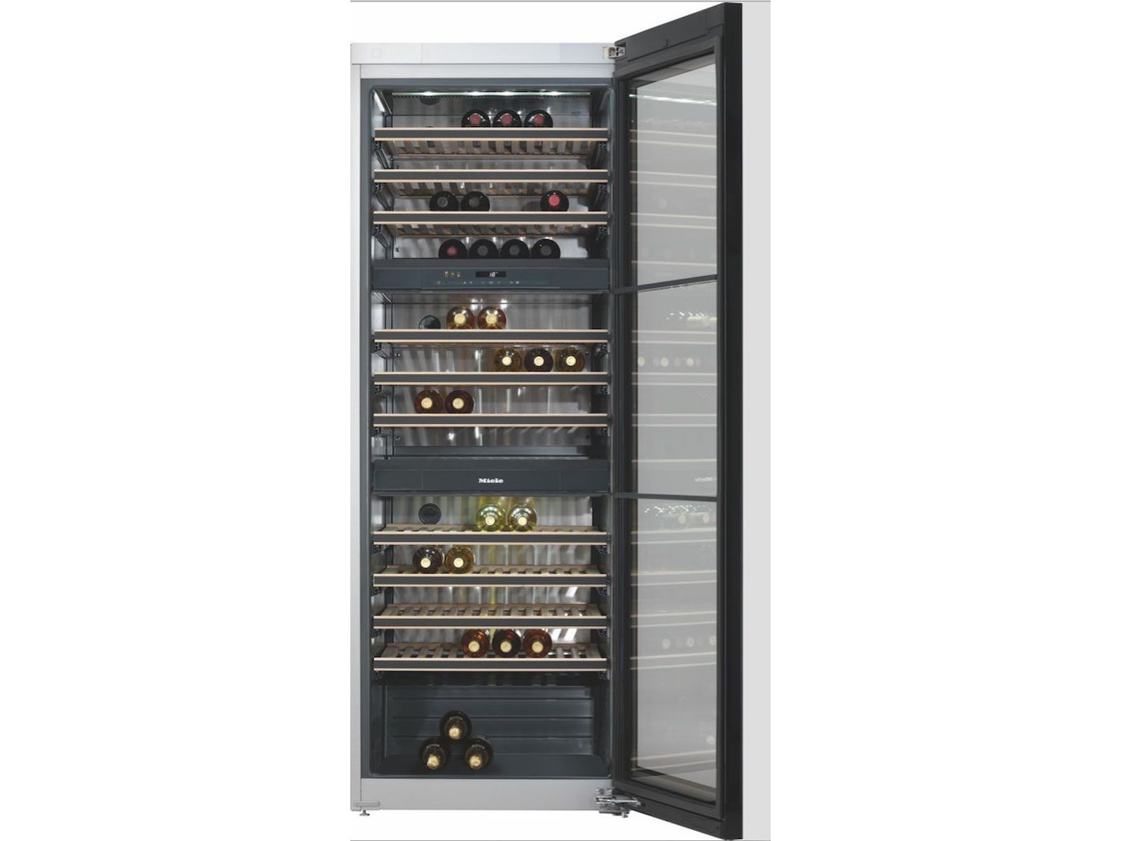 De wijnklimaatkast van Miele is voorzien van 3 afzonderlijk regelbare temperatuurzones. U kunt tegelijkertijd drie verschillende soorten wijn, bijvoorbeeld bijvoorbeeld rode wijn, witte wijn, champagne of mousserende wijn perfect bewaren op de juiste temperatuur.