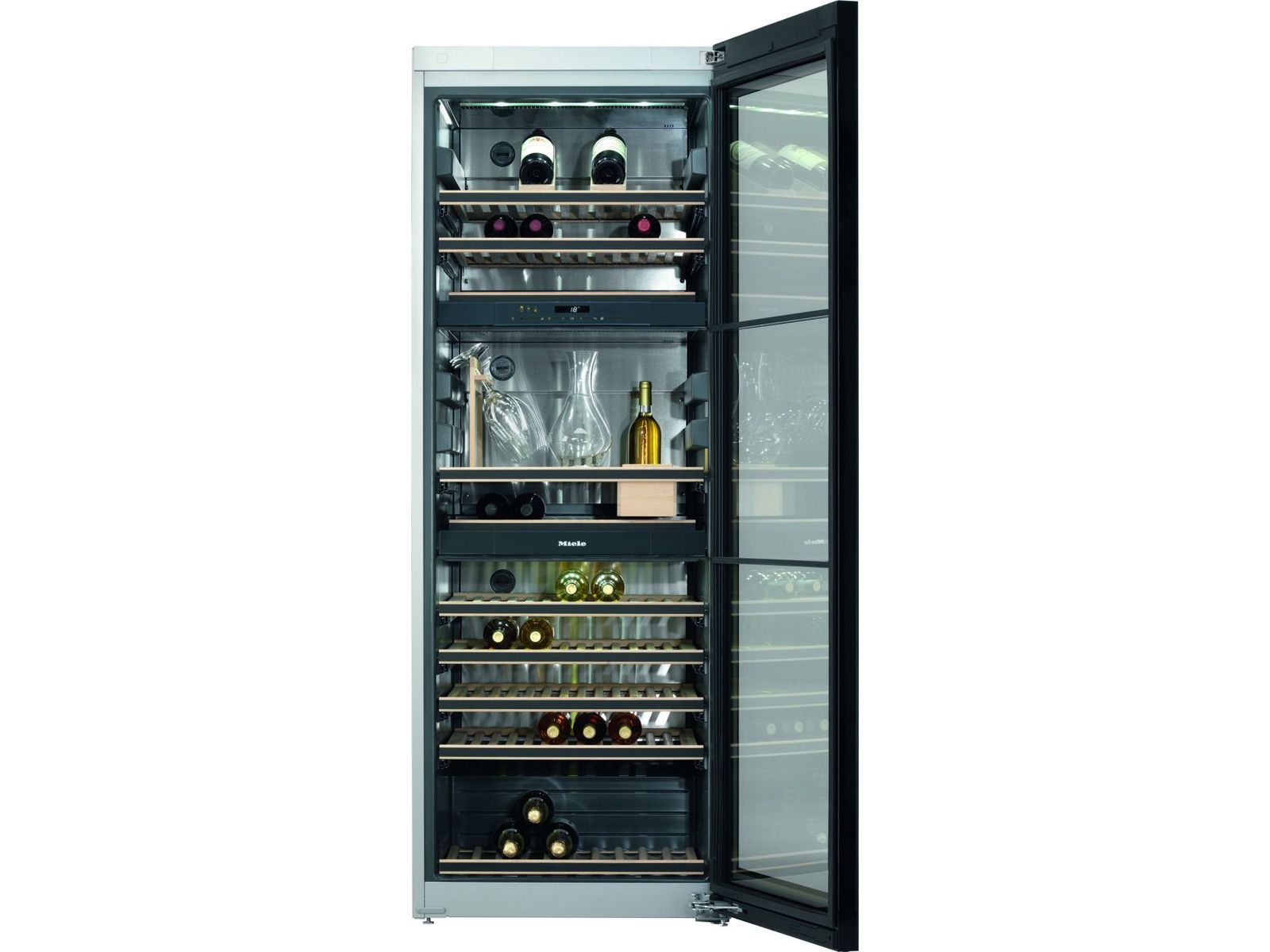 De wijnklimaatkast van Miele is voorzien van drie afzonderlijk regelbare temperatuurzones. U kunt tegelijkertijd drie verschillende soorten wijn, bijvoorbeeld bijvoorbeeld rode wijn, witte wijn, champagne of mousserende wijn perfect bewaren op de juiste temperatuur.