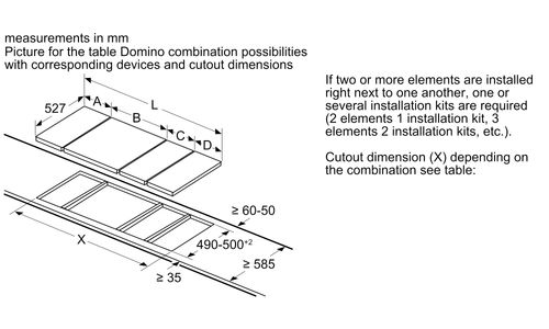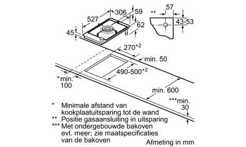 | Afmetingen uitsnijding werkblad (B x D) | 270 mm |
