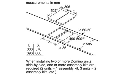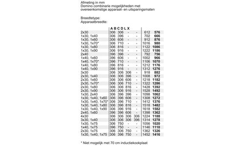 | Afmetingen kookplaat (B x D) | 306 mm |