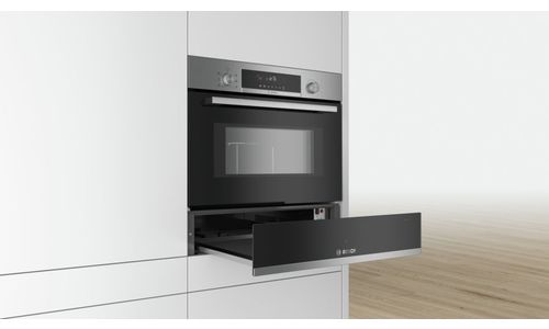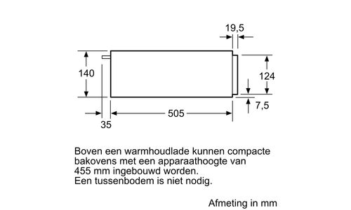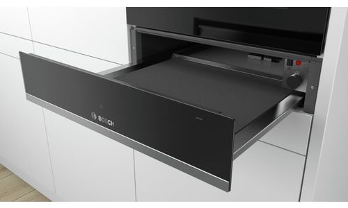De multifunctionele warmhoudlade voor een 14 cm nis: voor het voorverwarmen van borden en het warmhouden van gerechten.