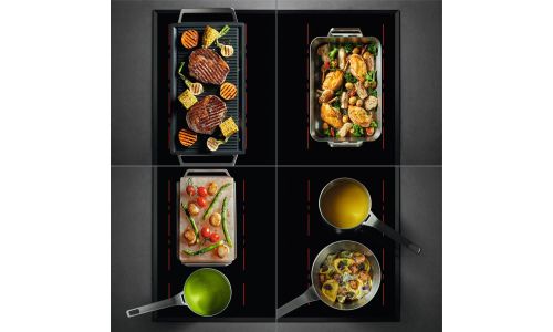 Op de speciale FlexiBridge-kookzone met 4 segmenten kunt u kiezen welke segmenten u verbindt, en passen alle soorten kookgerei, van kleine tot extra grote potten en pannen.