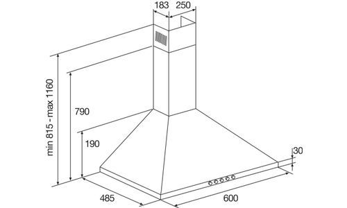 ++ Breedte: 60 cm ++ Afzuigkracht (hoogste stand): 350 m³/h ++ Geluidsniveau (Maximum): 60 dB(A) ++