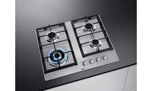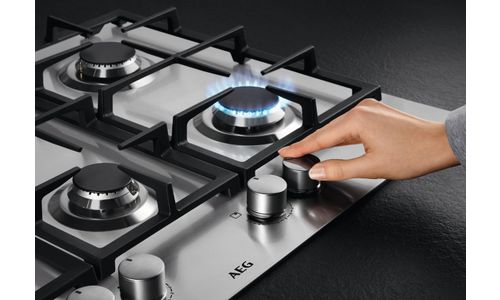 De AEG-gaskookplaat heeft nieuwe snelbranders die maximaal 20% sneller opwarmen dan standaard gasbranders. Zo kunt u alles - zoals het bakken van steak, vis of aardappels - nog sneller beginnen.