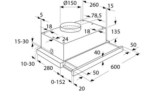 ++ Breedte: 60 cm ++ Afzuigkracht (hoogste stand): 420 m³/h ++ Geluidsniveau (Maximum): 69 dB(A) ++