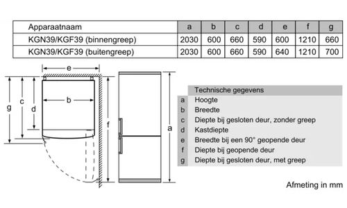 | Type koelkast | Tweedeurs koelkast (vriesvak onderaan) |