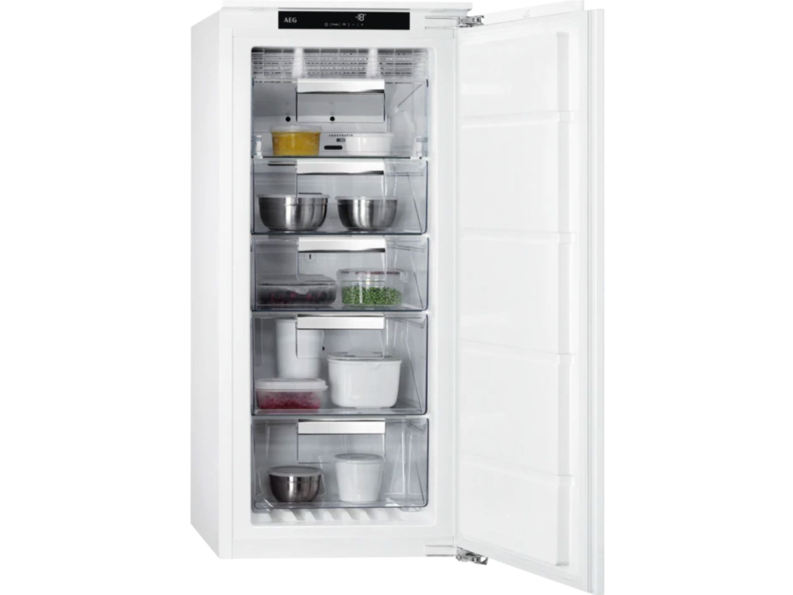 De Frostmatic-functie activeert het maximale vriesvermogen, zodat verse producten zo snel mogelijk worden ingevroren. De vriezer keert vervolgens terug naar de normale stand.