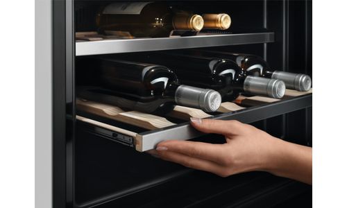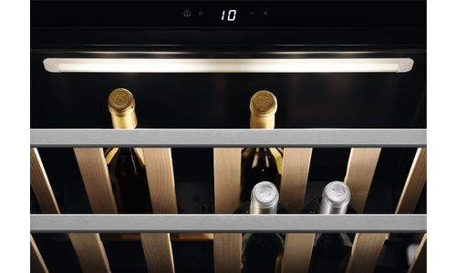 Deze compacte wijnkelder biedt het summum van stijl en flexibiliteit. Hij heeft een temperatuurbereik van 5 tot 20 graden en past perfect bij je andere keukenapparatuur uit het AEG Compact-assortiment.