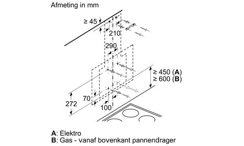 Diagonale afzuigkap: Met deze afzuigkap heeft u perfect zicht op de pannen.