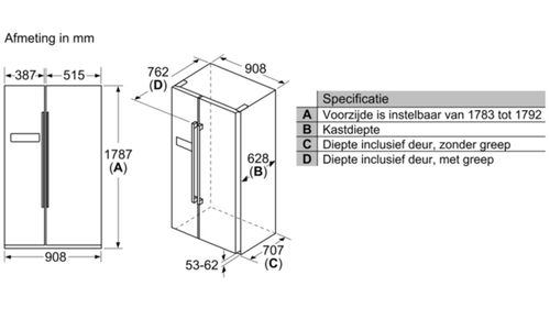 Side-by-Side - NoFrost - Diepvriezer 189 l****, koelkast 371 l, IceBox, 179x91x71 cm - Inox deuren antiFingerprint