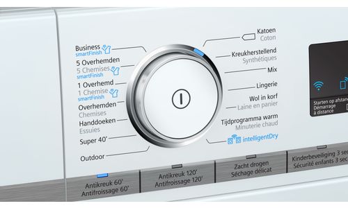 - Vermindert zelfs sterke kreuken voor het strijken: smartFinish programma voor maatpakken, hemden en bloezen.