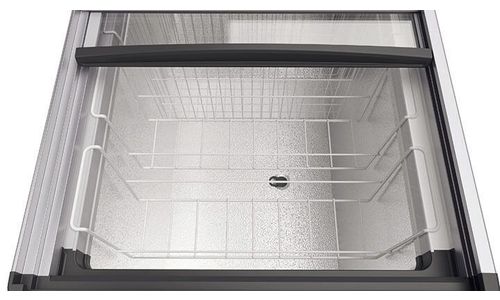 De glazen schuifdeksels bestaan uit gehard enkelvoudig veiligheidsglas, omlijst met een kunststof frame en geïntegreerde greep en bieden een optimaal overzicht op de producten.