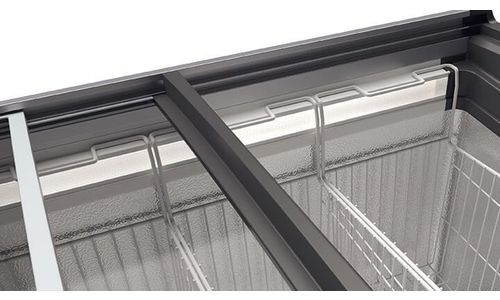 De heetgas frameverwarming voorkomt condens op het glasdeksel en garandeert dat het schuifdeksel gemakkelijk opent en sluit. Heetgas is aanzienlijk zuiniger dan elektrische frameverwarming en zorgt er voor dat uw producten – ook bij hoge luchtvochtigheid – optimaal worden gepresenteerd.