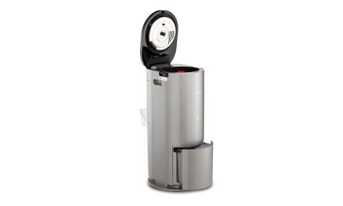 - Ecologisch resultaat; residu kan eindeloos zonder geur worden bewaard of worden gebruikt voor bemesting van planten Zelfreinigende functie; voeg water toe en stoom zal de emmer en de filter reinigen