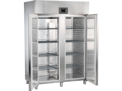 De Liebherr GKPv 1470 biedt ruim 1300 liter koelruimte met GN 2/1 interieur. Het temperatuurbereik is nauwkeurig instelbaar tussen de -2°C en +15°C. De volledig edelstalen kast is snel schoon te maken dankzij de voorgevormde ribben in de chroomnikkelstalen binnenkuip.