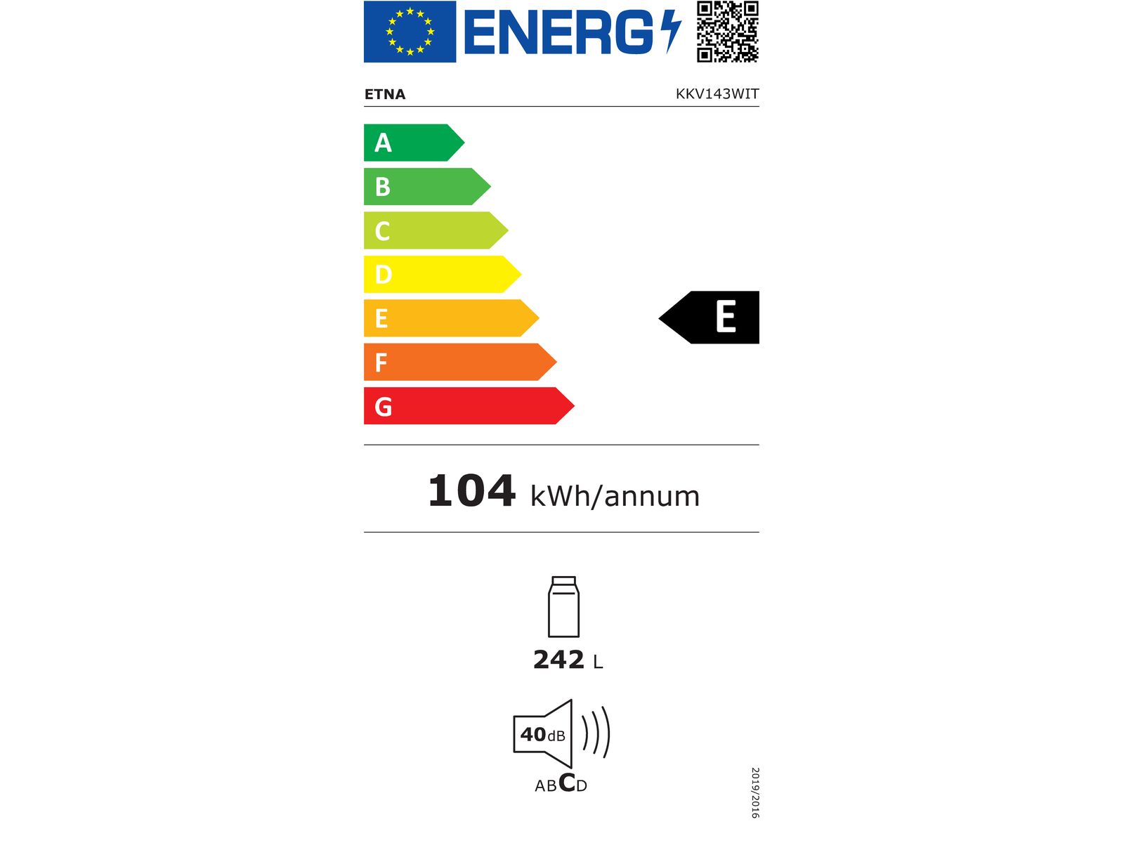 Totale netto inhoud koelkast