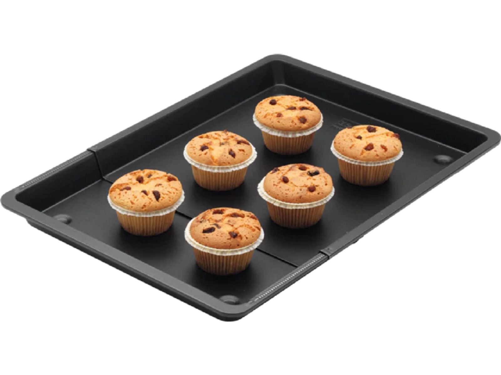 Uitschuifbare bakplaat. Handig extra bakplaat dat eenvoudig is uit te schuiven tot elke breedte van 38 cm tot 52 cm, om de ovenruimte optimaal te benutten.