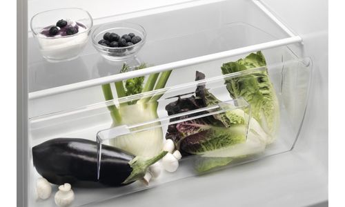 In de transparante groentelade over de volle breedte kunnen gemakkelijk grotere en langere producten worden opgeslagen. Winkel met vertrouwen wetende dat je in je koelkast voldoende ruimte hebt voor grotere producten.