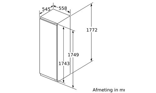 Koelkast - integreerbaar iQ500 Eéndeurskoelkast - 177,5 cm Koelzone 252 l met hyperFresh plus, diepvrieszone 34 l****, vaste deur SoftClose scharn., 177,5 cm
