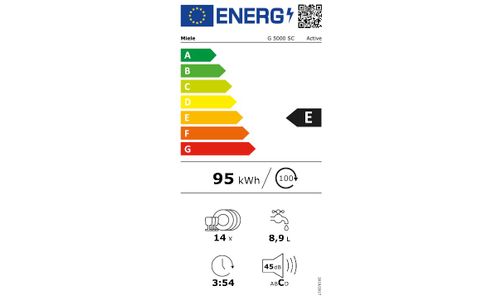 Reinigingsklasse A: Beste reinigings- en droogresultaten voor normaal vervuild vaatwerk in 58 minuten.