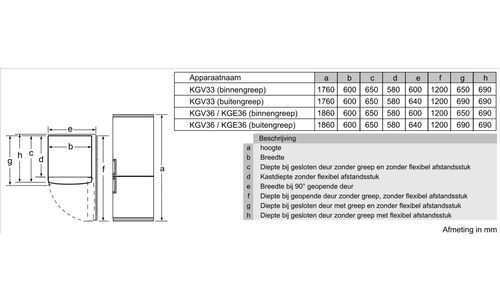 | Type koelkast | Tweedeurs koelkast (vriesvak onderaan) |