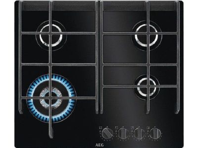Gaskookplaat, 4 gasbranders, 59 cm, thermokoppel, gas op vitrokeramisch glas