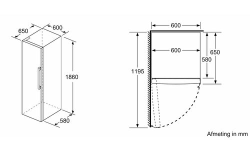 ++ Totale netto inhoud: 346 Liter ++ Geluidsniveau: 39 dB(A) ++ Hoogte: 186 cm ++