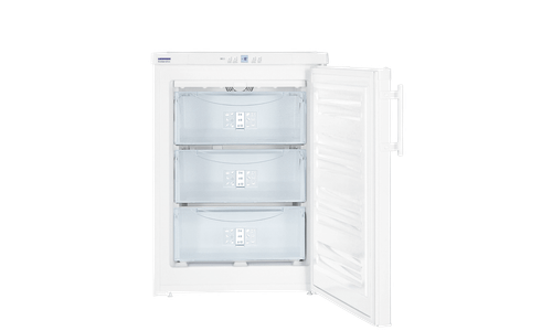 De Liebherr GN 1066 is een tafelmodel diepvrieskast met 91 liter netto inhoud. Dankzij het NoFrost systeem hoeft u nooit meer te ontdooien, geen ijsvorming op de verpakkingen of in de laden. Met digitale temperatuurdisplay, invriesautomaat, deuralarm en VarioSpace voor hoge verpakkingen.