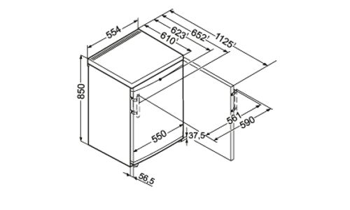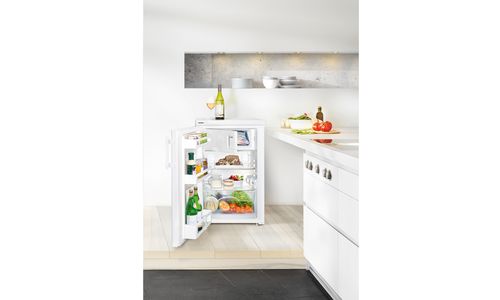 De Liebherr TP 1434 is een 55 cm brede tafelmodel koelkast met inwendig vriesvak. Uitvoering met verstelbare GlassLine plateaus, kastbrede groentelade en afneembaar werkblad. Twee deurvakken zijn in hoogte verstelbaar en voorzien van uitneembare gehard glazen bodem.