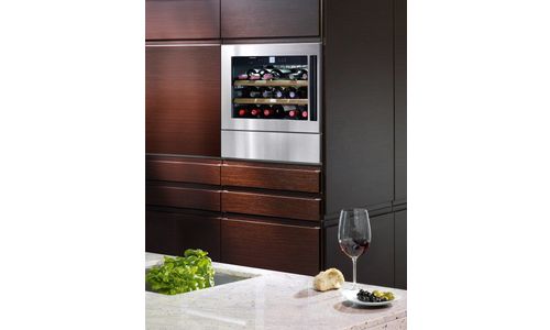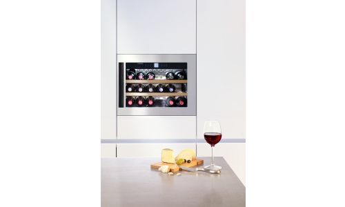 De Liebherr WKEes 553 is een 45 cm hoge inbouw wijnkast met 1 vaste temperatuur, instelbaar tussen de +5°C en +20°C. Edelstaal deur met isolatieglas, dimbare LED verlichting, 2 houten plateaus op telescooprails en FreshAir filter. Capaciteit 18 flessen (Bordeauxformaat).