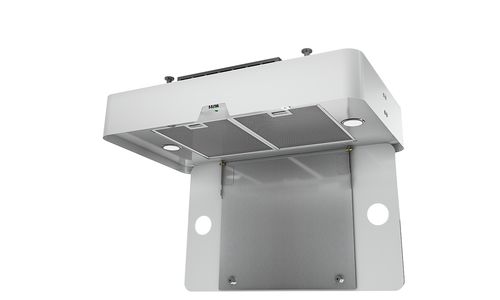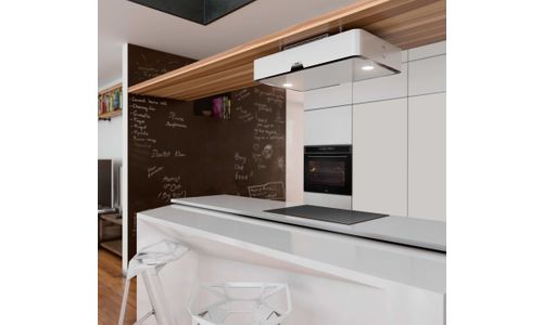 Wel de lusten, niet de lasten met deze build to ceiling dampkap die niet in het plafond ingebouwd hoeft te worden. Dankzij de platte motor is de dampkap slechts 20cm hoog en kan deze recirculatie afzuigkap aan het plafond bevestigd worden. Een stijlvolle en functionele oplossing voor open keukens en kookeilanden. De AOP380WIT is 80cm breed en wordt standaard geleverd met twee long-life koolstoffilters. De 2 meegeleverde aluminium casettefilters zijn vaatwasser bestendig. De plafondunit heeft vier standen een afzuigcapaciteit van 230 tot 420m3 per uur (in recirculatie). De warm witte LED spots geven helder werklicht tijdens het koken. De AOP380WIT is uitgevoerd in RAL9016 wit, een veel gekozen verfkleur voor plafonds en muren.