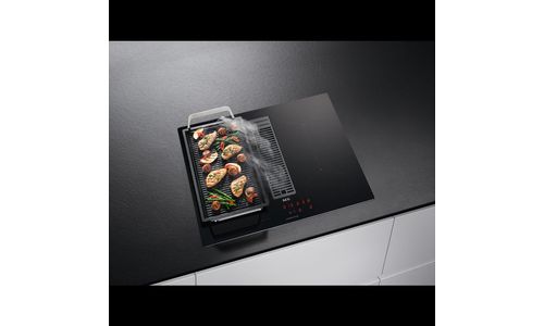 ComboHob Bridge combineert een krachtige inductiekookplaat en een afzuigkap in één buitengewoon apparaat. Het keukenontwerp is niet langer beperkt tot waar een afzuigkap boven het hoofd kan worden geïnstalleerd. Ervaar de vrijheid van design met het gemak van een hybride kookplaat.