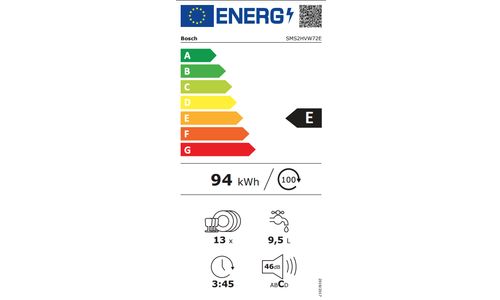 | Energieverbruik in eco-programma per 100 cycli | 94 kWh |