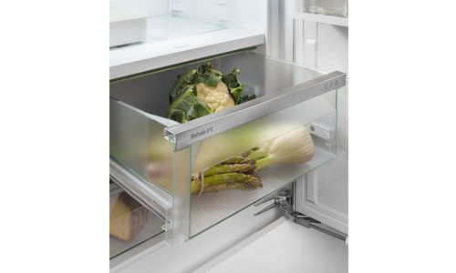 Deze inbouwkoelkast met 4-sterren vriesvak biedt net dat beetje extra. Het deelbare draagplateau en het geïntegreerde flessenplateau bieden extra flexibiliteit. In de 2 BioFresh laden op telescooprails bewaart u groenten en fruit tot 3x langer dan in een normale groentelade. De temperatuur is via het Monochroom display met Touch-bediening instelbaar en toont naast de actuele temperatuur ook alarmmeldingen. Voorbereid voor smarthome toepassingen.