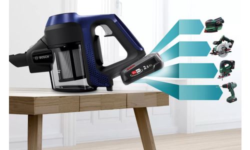 Onze meest compacte snoerloze steelstofzuiger. De uitwisselbare batterij maakt deel uit van het Power for ALL system en kan daardoor met veel apparaten uit de Bosch Home & Garden lijn gecombineerd worden.