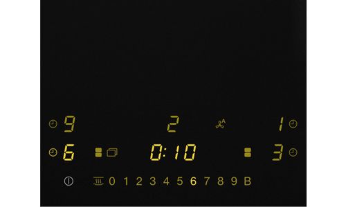 Kookvlak - Inductie met geïntegreerde dampkap ; Roestvrij Staal ; ComfortSelect Plus Geel ; 806 mm ; 4 zones ; TwinBooster, Keepwarm ; Opbouw ; PowerFlex XL ; Geïntegreerde afzuigunit ; Connectivty 3.0