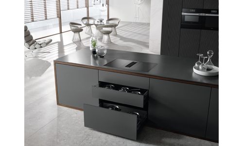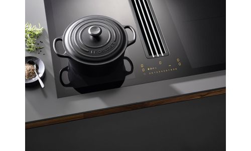 Inductiekookplaat met geïntegreerde dampafvoer met 2 extra grote PowerFlex XL-kookzones en naadloos aansluitende dampafvoer