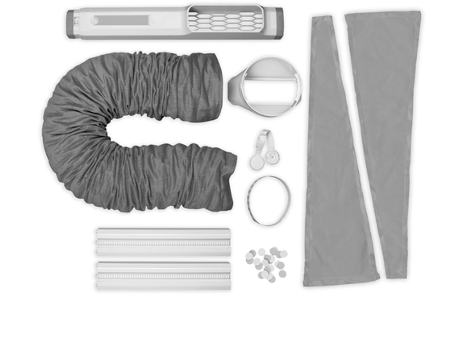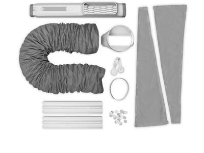 Inclusief twee stoffen zijkappen, die tot 100% van de raamopeningen kunnen bedekken (Voor ramen tot 1 meter breed) om te voorkomen dat er opnieuw warme lucht de kamer