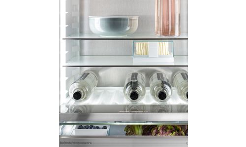 Deze inbouwkoelkast met vriesvak biedt alles. Het robuuste SmartSteel interieur is hygiënisch en geeft een professionele uitstraling. De LED wandpanelen en Ambient verlichting zorgen dat niets aan uw oog ontsnapt. De deur met SoftSystem sluit altijd zacht en de vele verstelmogelijkheden maken dit apparaat perfect voor dagelijks gebuik. In de 2 BioFresh Professional laden op SoftTelescopic rails houdt u uw groenten en fruit tot 3x langer vers. HydroBreeze zorgt voor een frisse nevel als dauw over het land.
