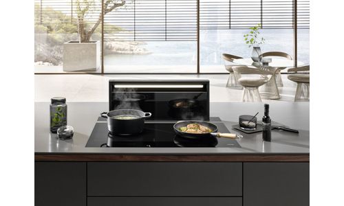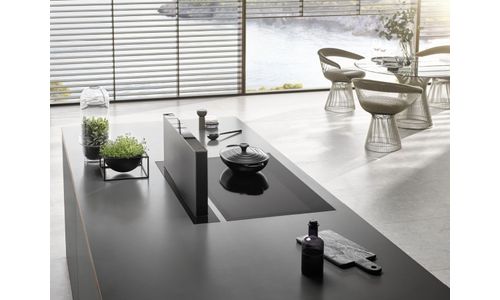 Downdraft-werkbladdampkap een elegant zwart design met intuïtieve SmartControl-bediening