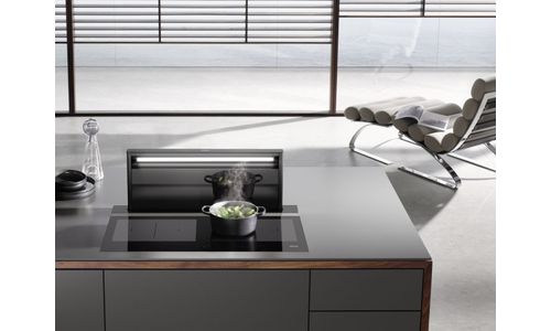 Downdraft-werkbladdampkap een elegant zwart design met intuïtieve SmartControl-bediening