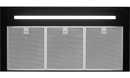 Wanddampkap, Blokmodel, 'Slim line', Glazen Front, touch Control, 90cm, Zwart + Inox strip