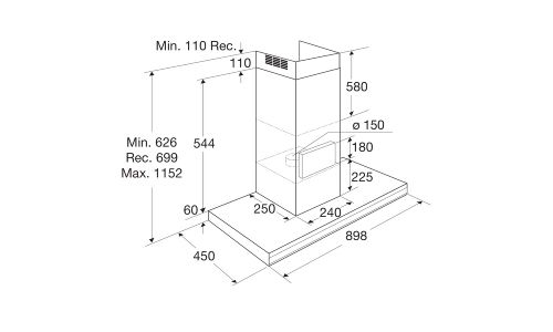 Het mooie brede design van deze matzwarte schouwkap van Pelgrim zorgt voor de beste afzuigmogelijkheden boven je kookplaat. De krachtige motor biedt een afzuigcapaciteit van 610 m³/h. Middels een speciale functie is het bovendien mogelijk om tijdelijk extra hoge afzuigcapaciteit in te schakelen. Het apparaat is voorzien van een elektronisch bedieningspaneel met druktoetsen en daardoor zeer eenvoudig in gebruik. Met de naloop intensiefstand worden de laatste geurtjes en vetdeeltjes weggenomen nadat jij klaar bent met koken en deze stopt automatisch. Moet het vetfilter (en indien van toepassing het recirculatiefilter) gereinigd worden? Dan wordt dit aangegeven door middel van een indicator. Tot slot zorgt de brede LED strip (7W) voor perfect zicht op je kookplaat. Mooi makkelijk van Pelgrim.