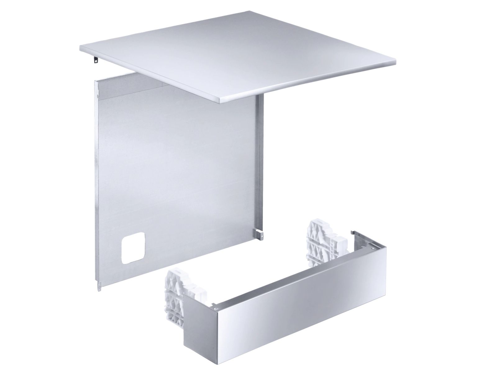 Bestaand uit plint met 2 steunen, bovenblad en achterwandpaneel