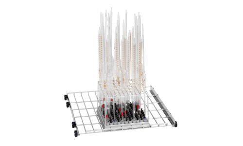 Voor het optimaal plaatsen van maximaal 121 pipetten, loodrecht
