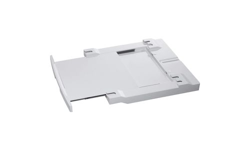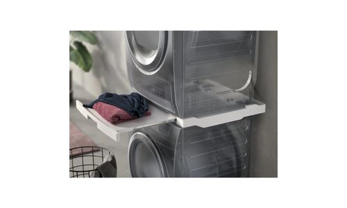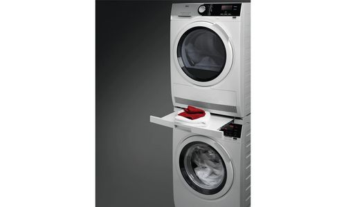 Stapelkit met uittrekbaar rek voor AEG wasmachines en drogers. Afmetingen: voor wasmachines en drogers van 60 cm breed en 54–60 cm diep. Schuiflade schuift maximaal 34 cm uit. Met muuranker. Kleur : Global White