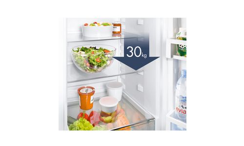 Het hoogwaardige interieur wordt onderstreept door de luxe GlassLine uitrusting. De van veiligheidsglas gemaakte draagplateaus zijn sterk, krasbestendig en eenvoudig te reinigen. De draagplateaus zijn afgewerkt met een edelstalen lijst en afneembare achterstrip. De glasplateaus kunnen in hoogte worden versteld zonder dat deze eerst moeten worden uitgenomen. Bij een deuropening van slechts 90° zijn de glasplateaus uitneembaar.